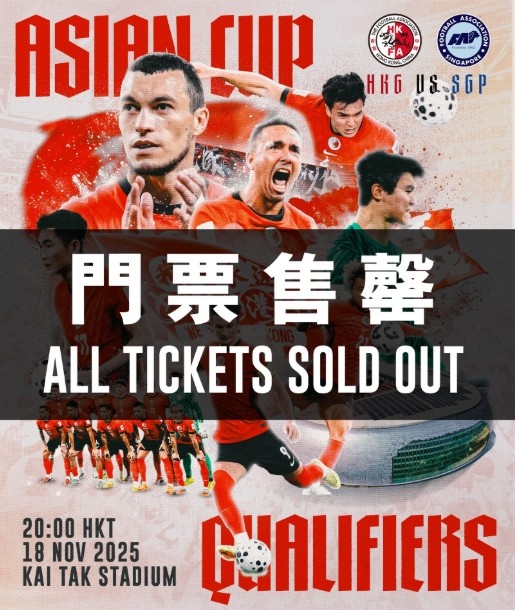 11月18日讯 今晚20:00,亚初赛第三阶段第5轮,中国香港代表队将镇守主场迎战新加坡队比赛将在启德大球场进行,而本场比赛的门票早已在本月7日就沿路售罄。