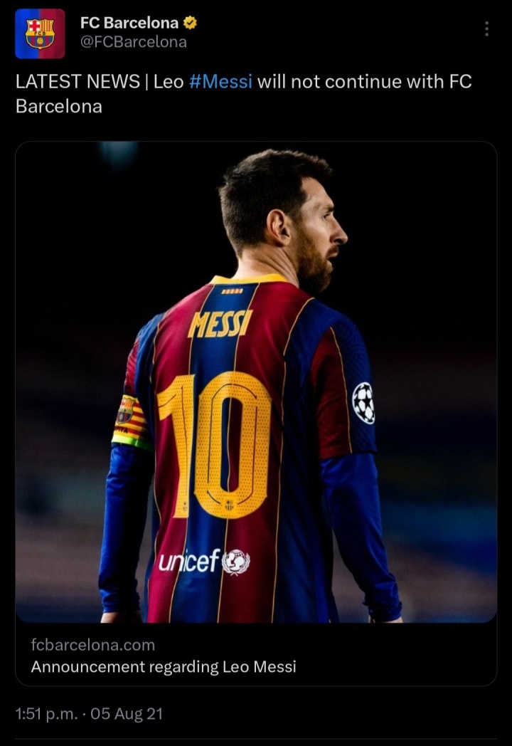 转瞬四年😶2021年的今天,巴萨官宣梅西离队,界限21年红蓝生计