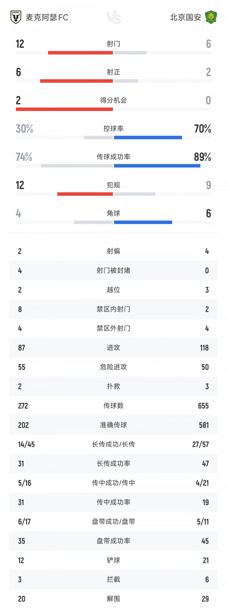 3-0国安!麦克阿瑟主帅:敌手很优秀,咱们控球少但能甘休对方