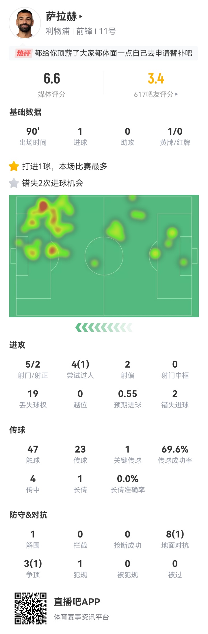 萨拉赫本场数据↓