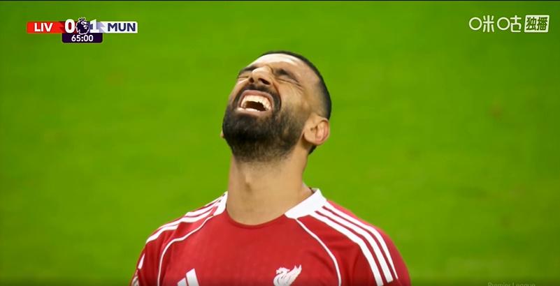第64分钟,利物浦反击,凯尔凯兹左侧传中,中路曼联后卫集中两点冒顶,后点萨拉赫一双一濒临拉门斯,后果打近角将球打偏。