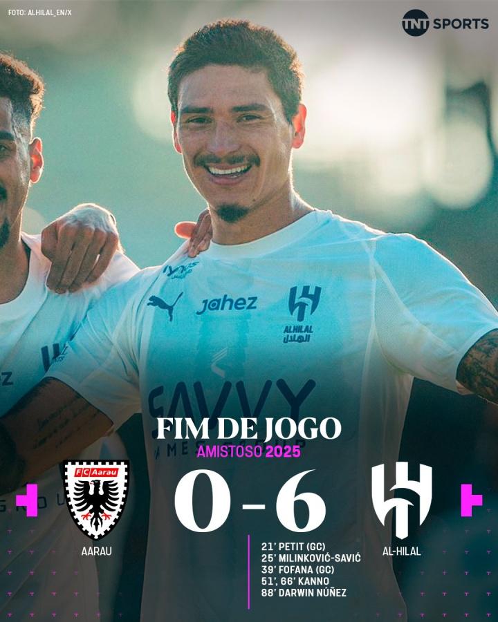 友谊赛利雅得眉月6-0大捷瑞士球队阿劳,本场比赛眉月新援努涅斯在第88分钟破门。