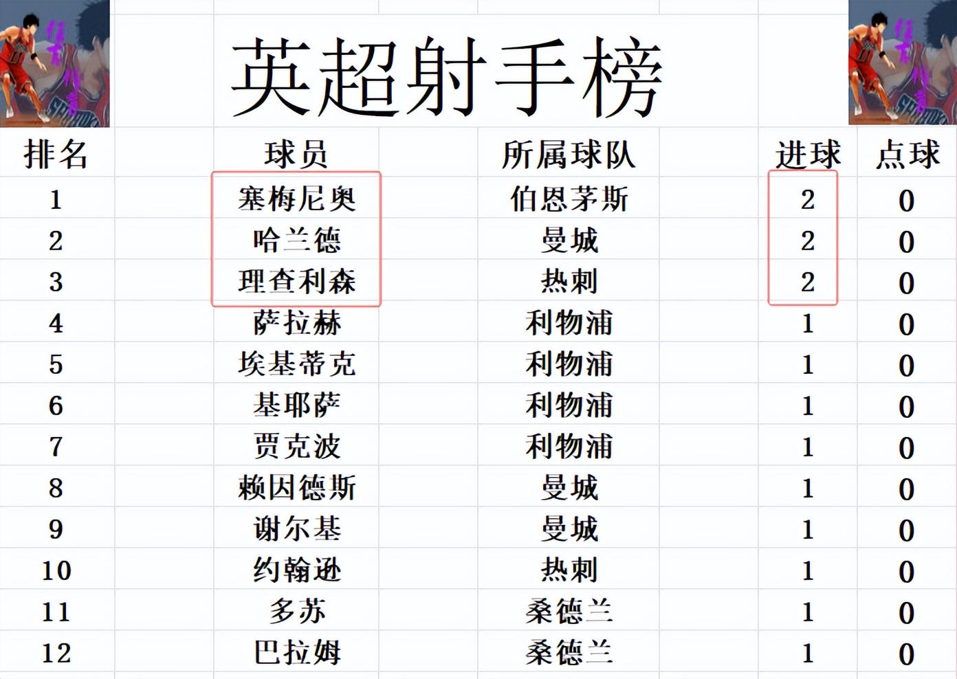 弓手榜方面,哈兰德和理查利森今天都是梅开二度,两东谈主追上塞梅尼奥,三东谈主2球并排榜首。萨拉赫,埃基蒂克,赖因德斯,约翰逊,谢尔基等东谈主都是1球上榜。
