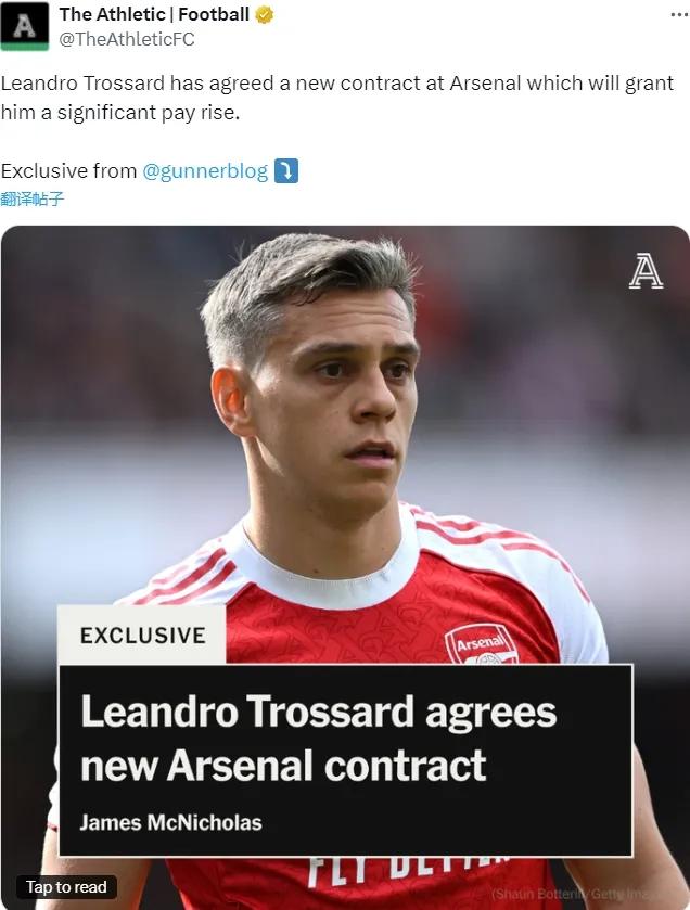gunnerblog在TA发文暗意,特罗萨德依然和阿森纳就一份新合同已毕了公约。