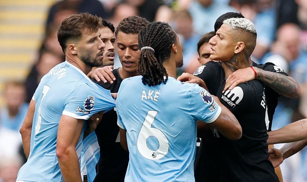 本场比赛曼城排出了4231阵型。哈兰德顶在最前边。奥斯卡-鲍勃、谢尔基和马尔穆什的迫切组合携手出击。赖因德斯和尼科-冈萨雷斯构成双后腰。里科-刘易斯、斯通斯、鲁本-迪亚斯和艾特-努里4后卫首发出战。特拉福德担任首发门将。多库、伯纳多-和罗德里坐在替补席待命。