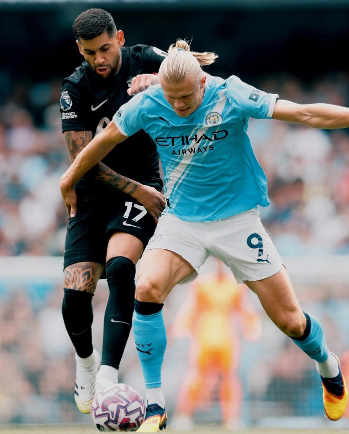在弗兰克上任之后,热刺一改此前的激进立场,此役客场用凝视反击和高位压迫和曼城周旋,尽管控球率处于流毒,但一上来就运动完成前场抢断,给曼城的后防地施压,尽管所在上略显被迫,但蓝月军团已经在第28分钟着手制造杀机,哈兰德前场带球送出直塞,可惜马尔穆什的单刀契机莫得把抓住,被维卡里奥勇猛扑出。