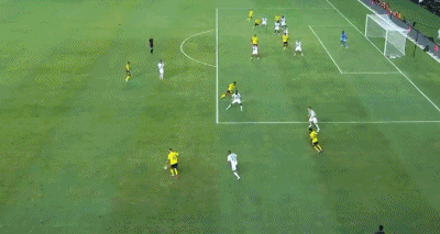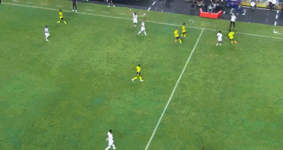 第45+6分钟,凯西扣门折射上钩,吉达国民扳平比分,1-1