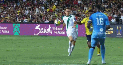 第45+4分钟,看着就疼!西马坎出球踢到吉达国民露出头部