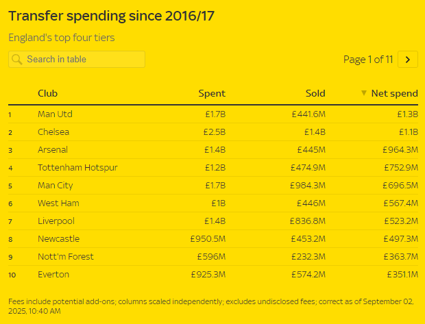 其次,在此前几个转会窗口,利物浦一直在阻挡支拨,在2024年夏窗,利物浦只是签入了基耶萨。包括2025年夏窗在内,利物浦自2016-17赛季以来的支拨在英超俱乐部排行第七位。辩论到出售球员等身分,利物浦的支拨以致少于热刺、西汉姆。