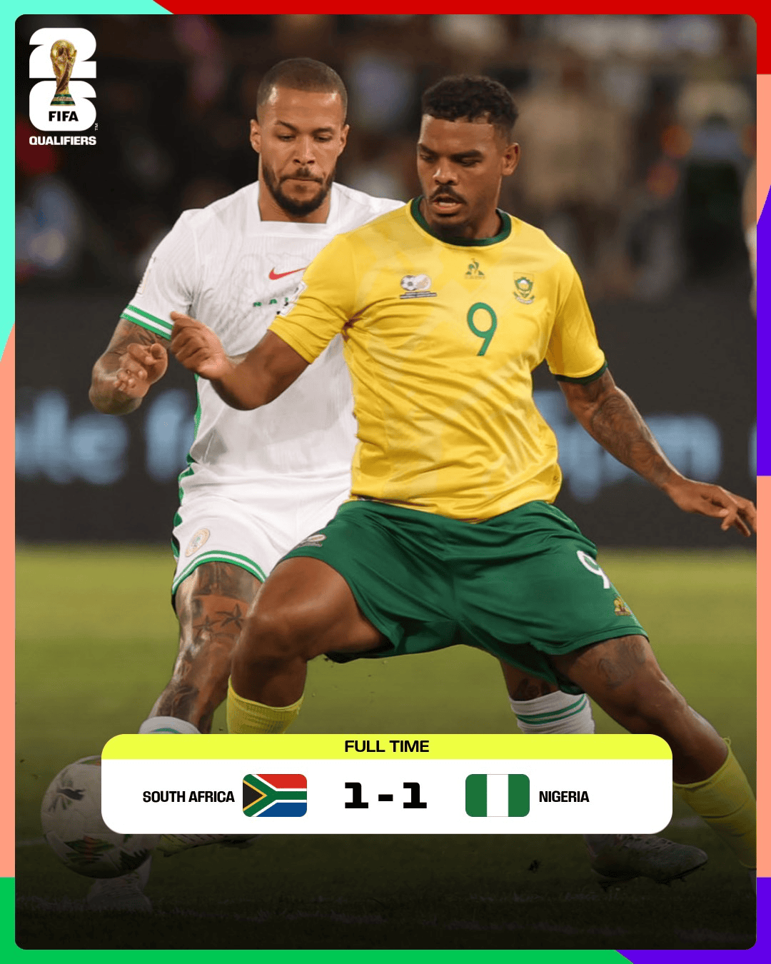 南非在上半场制造了尼日利亚后卫埃孔的乌龙球,富勒姆中卫巴锡在半场物化前为尼日利亚将比分扳平,比赛最终以平局物化。