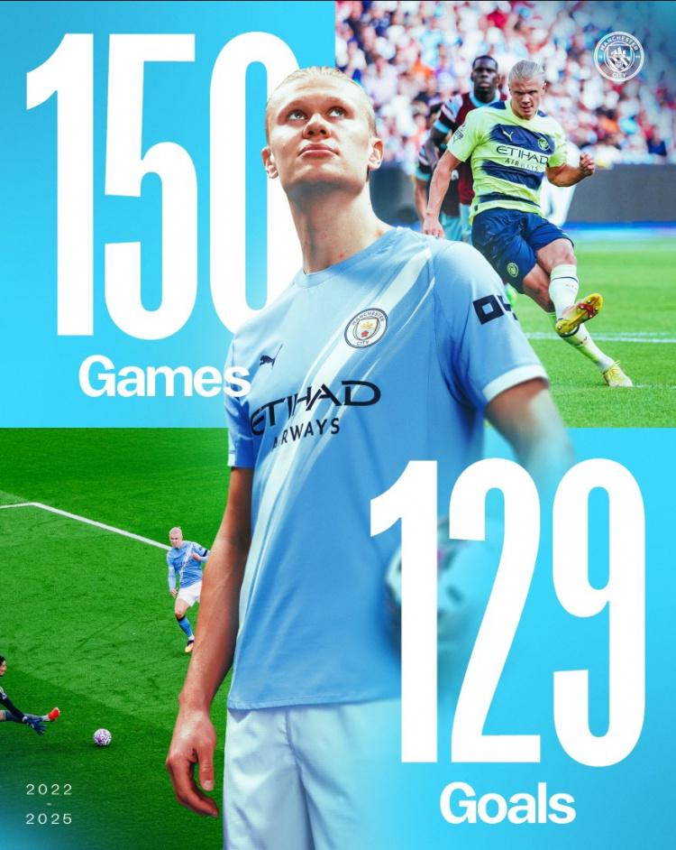 加盟曼城以来,哈兰德展示出了恐怖的进球恶果,他在150场比赛里打进129球并送出21次助攻,场均径直参与1球的。