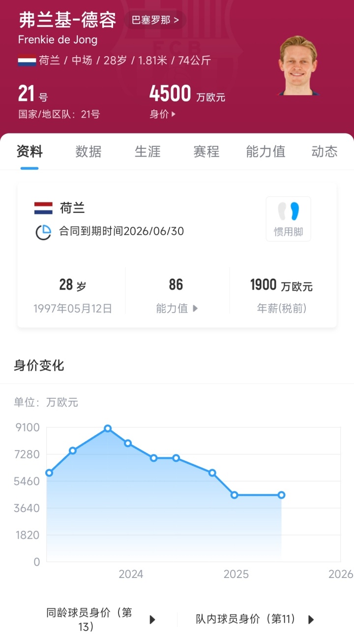 原来要付3750万!每体:德容开心续约至2029年,此前工资赓续延期