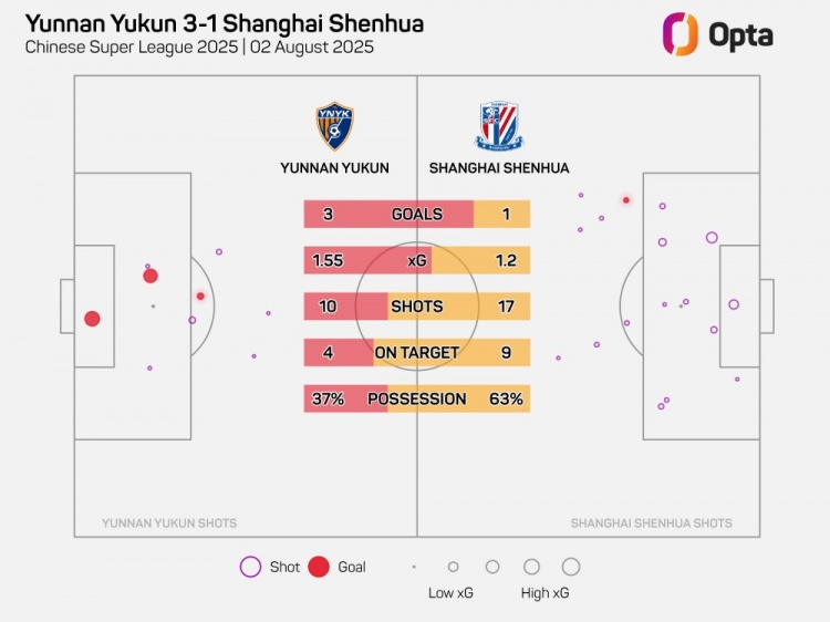 申花战玉昆上半场17次射门9次射正,创球队单场中场上半场记载