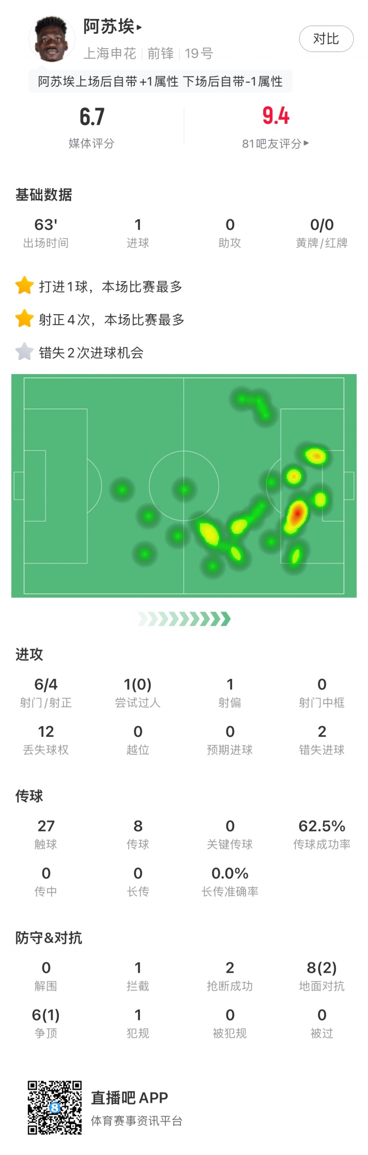 根柢停不下来!申花新援阿苏埃加盟中超后3场,场均成绩1粒进球