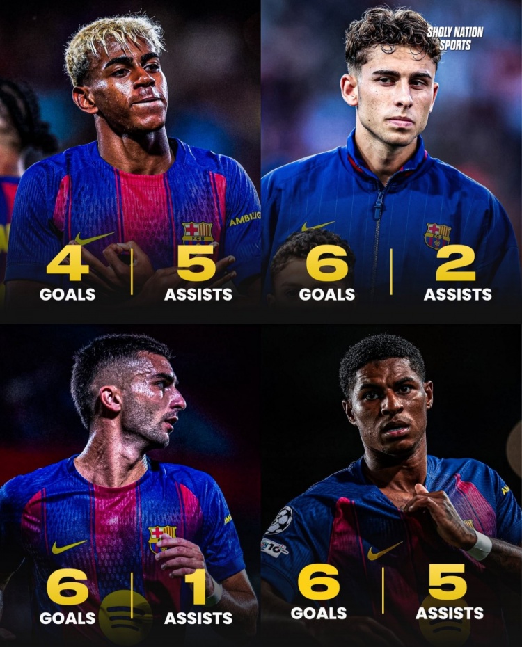 巴萨紧要端球员本赛季数据:拉什福德6球5助、亚马尔4球5助