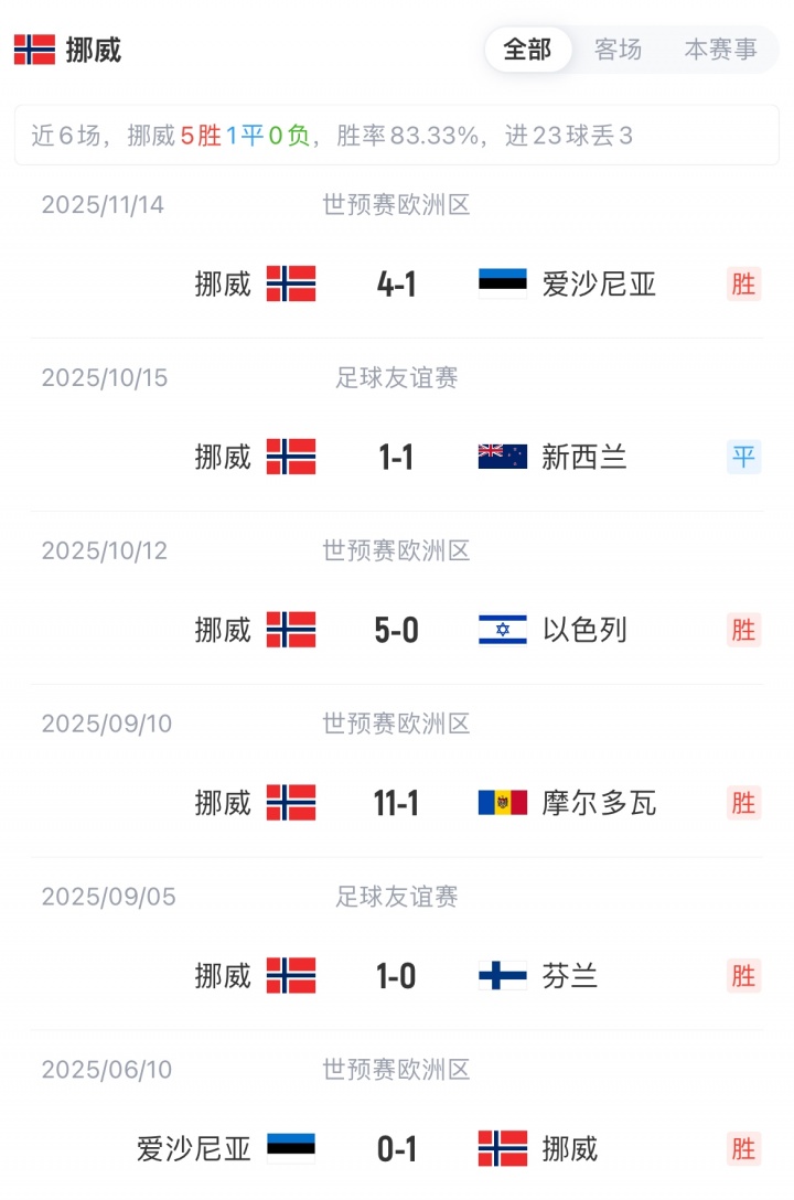挪威首发:1-尼兰德、5-沃尔费、17-赫格姆、3-阿耶尔、14-莱尔森、20-努萨、8-桑德·博格、6-帕特里克·伯格、18-托斯特维特、9-哈兰德、7-瑟尔洛特