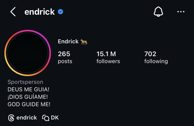 示意什么?恩德里克将社媒头像更始为空缺图片