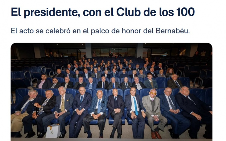 11月22日讯 皇马官网报说念,俱乐部主席弗洛伦蒂诺在伯纳乌球场荣誉包厢出席传统“百东说念主俱乐部”午宴,设席欢迎俱乐部最资深的会员们。