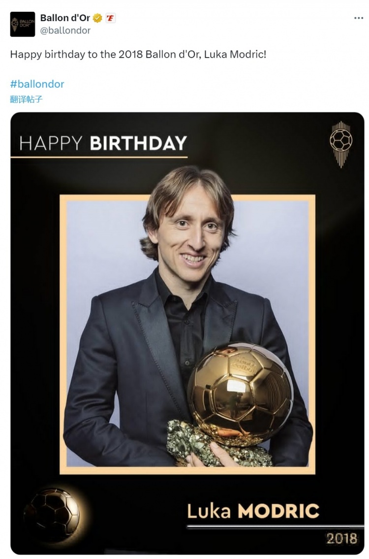 闹乌龙,金球奖官方提前一个月祝莫德里奇40岁诞辰闲静