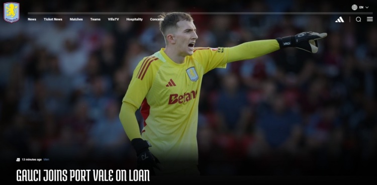 官方:维拉门将乔-高都外租英甲维尔港,租期一个赛季