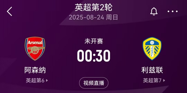 北京期间8月24日0:30,阿森纳将在英超第2轮中主场迎战利兹联。
