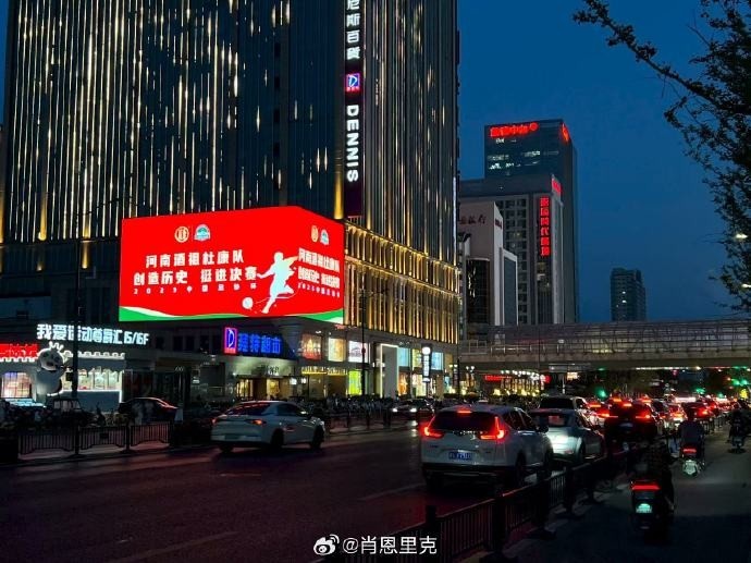 博主“肖恩里克”晒照,郑州多处LED屏应援河南队,还包括昨晚洛阳的应天门。