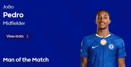 1射2传,若昂-佩德罗当选切尔西5-1西汉姆一役球迷票选全场最好
