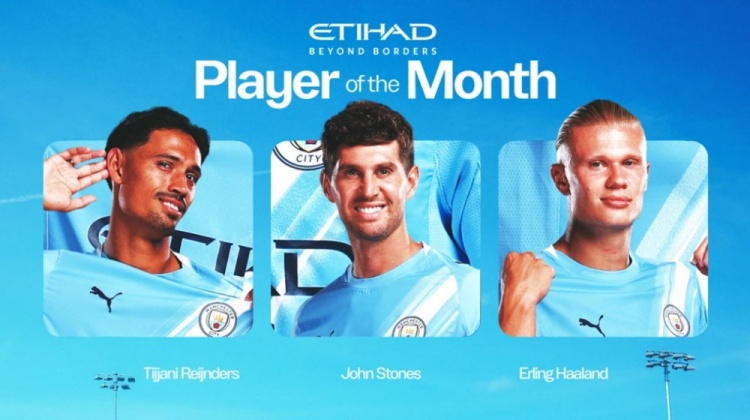 曼城官方8月队内最好候选:哈兰德、赖因德斯、斯通斯