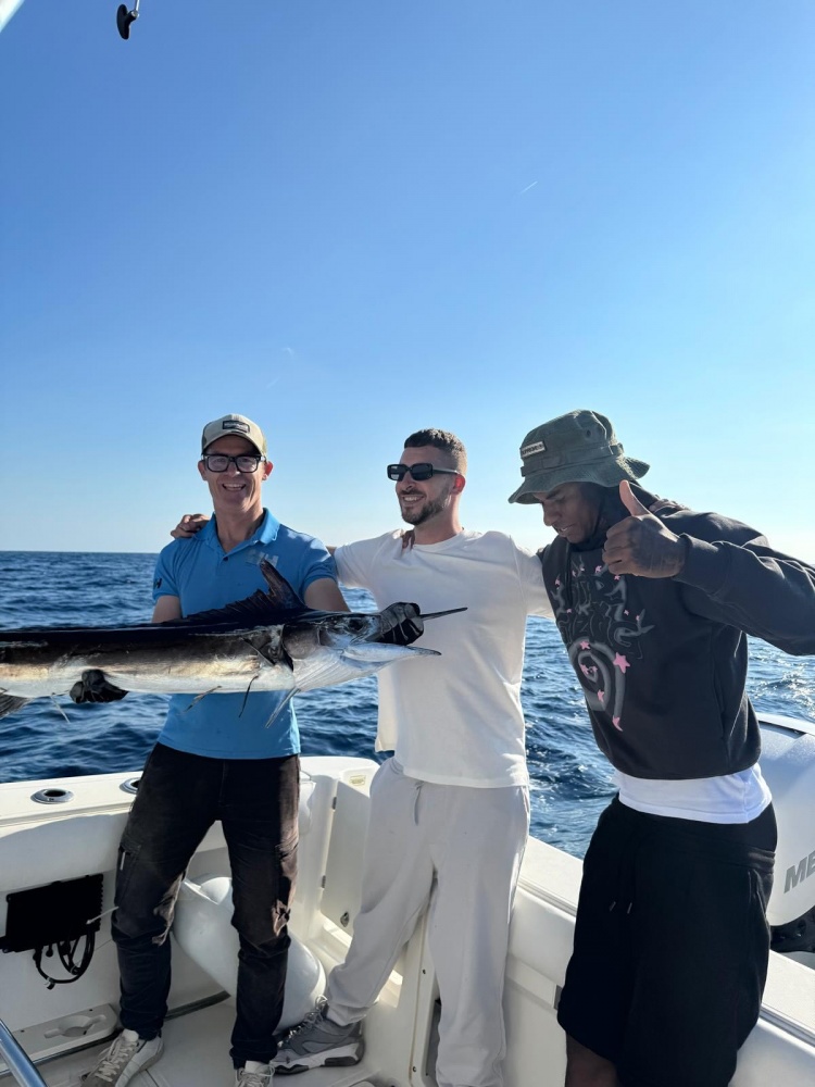 拉什福德社媒晒出海钓的相片,他拿着我方钓上的鱼,清晰灿烂笑貌。