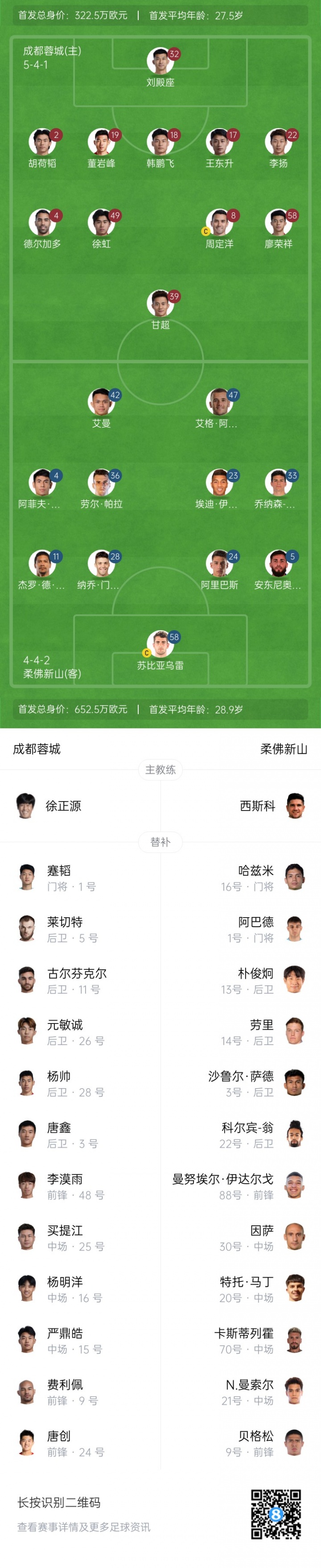 成王人蓉城替补:1-蹇韬、3-唐鑫、5-提莫-莱切特(F)、9-费利佩(F)、11-古尔芬克尔(F)、15-严鼎皓、16-杨明洋、24-唐创、25-木热合买提江-莫扎帕、26-元敏诚、28-杨帅、48-李漠雨